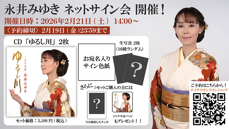ネットサイン会永井みゆきの『テイチクアワー~つながる放送部~』第54回 生放送出演 & デビュー35周年記念を記念して、 ネットサイン会 / 2026年2月21日(土) を開催いたします。