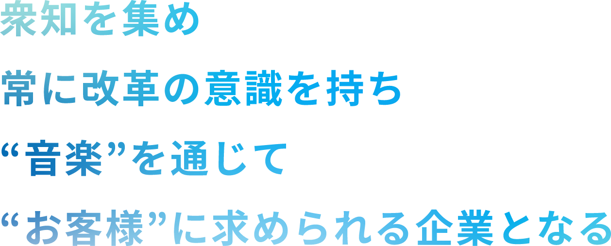 衆知を集め常に改革の意識を持ち”音楽”を通じて”お客様”に求められる企業となる