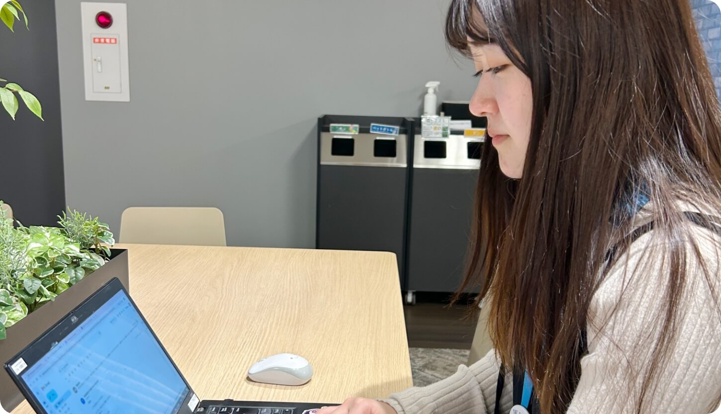 人数が少ないことで、若いうちからいろいろな仕事をさせていただけたりどの部署の方も、同じフロアにいるので関わる機会が少ない部署の方とも面識があったりと、私にとって、とても仕事がしやすい魅力的な環境だと感じました。