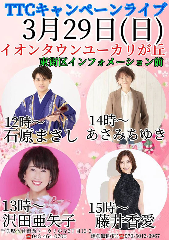 - 天候やトラブル・アーティストの都合・その他事由により、やむをえずイベントが延期・中止・内容が変更となる場合がございます。変更がある場合は、当日テイチクホームページ等でご案内させていただきますので、あらかじめご了承ください。