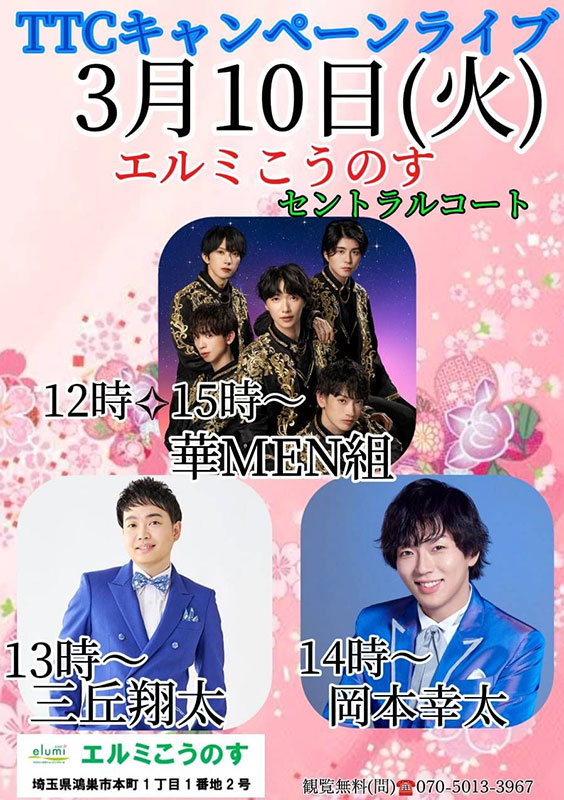 三丘翔太「華のひと」発売記念 キャンペーン 埼玉:エルミこうのす セントラルコート