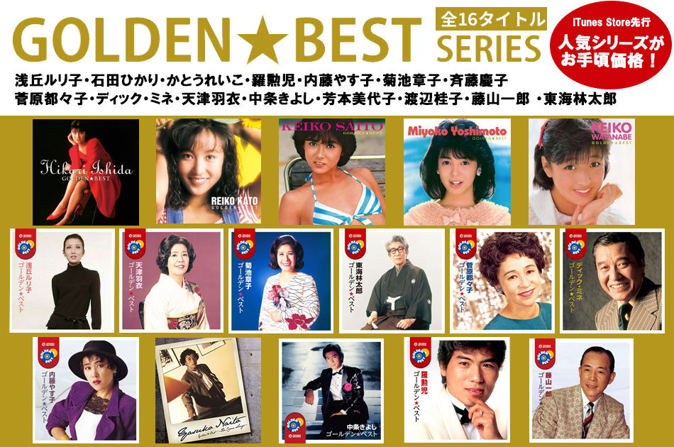 2022年8月11日(木・祝)より、iTunes Store にて、大人気ベスト盤シリーズ〈ゴールデン☆ベスト〉16タイトルがプライスオフ!! 代表曲を網羅した良質なベスト盤を、お買い求め易い価格で一挙ご紹介!この機会に是非お楽しみください。